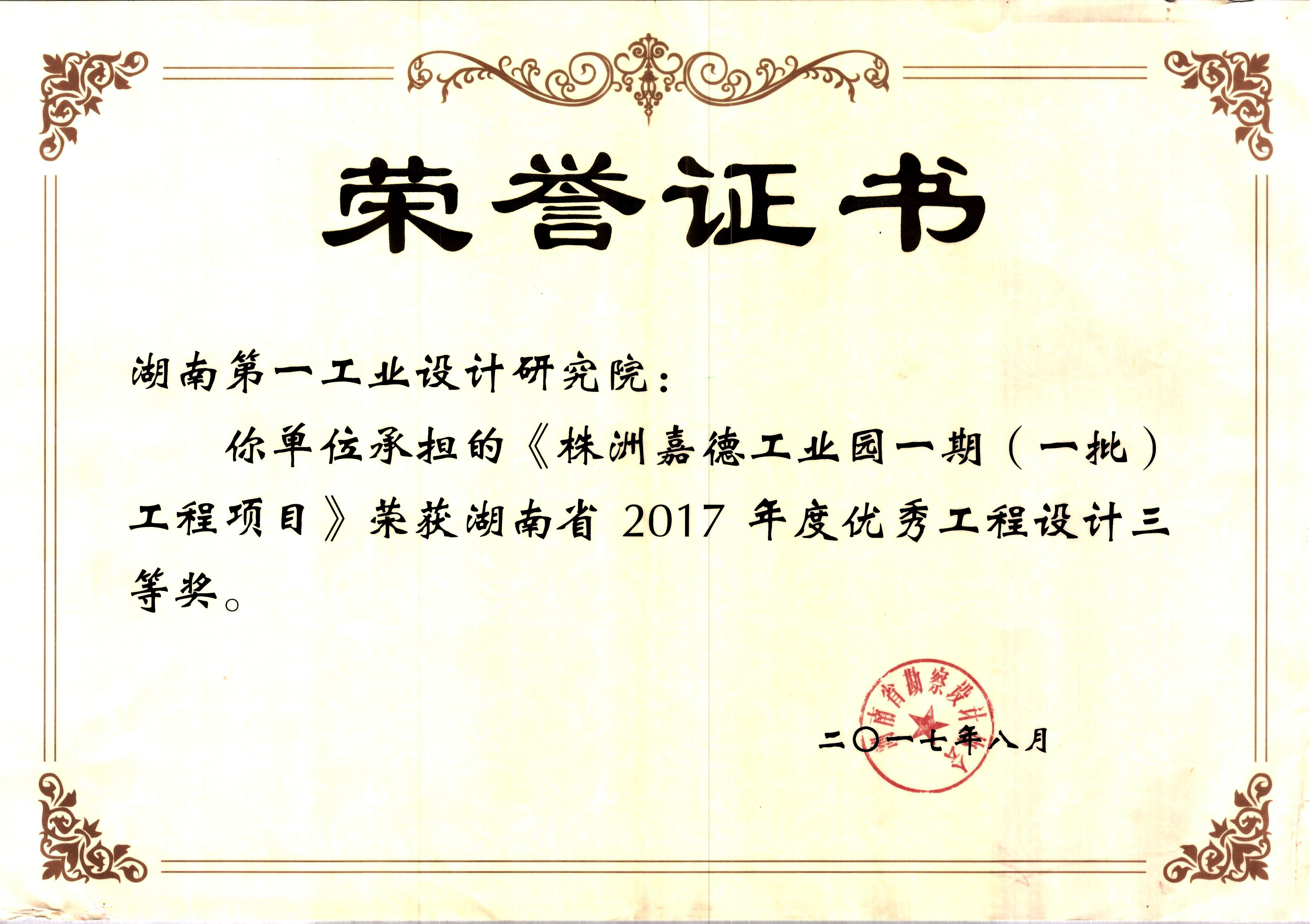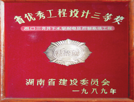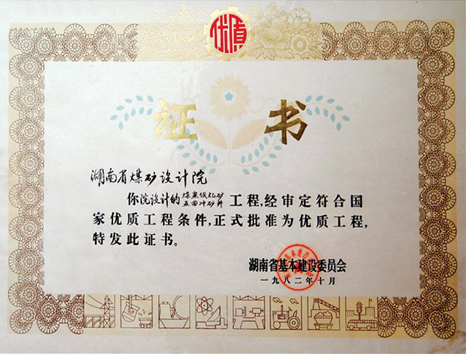 湖南省優(yōu)秀設(shè)計(jì)表?yè)P(yáng)金獎(jiǎng)(1984)