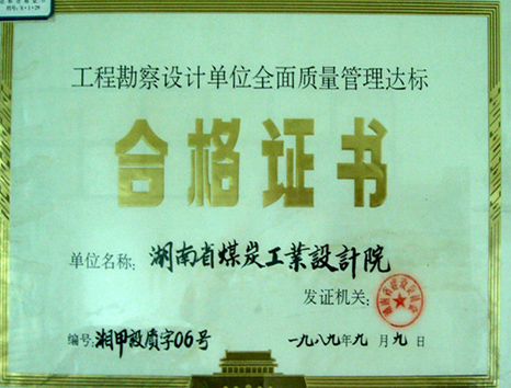 全面質(zhì)量管理合格證書(1989)