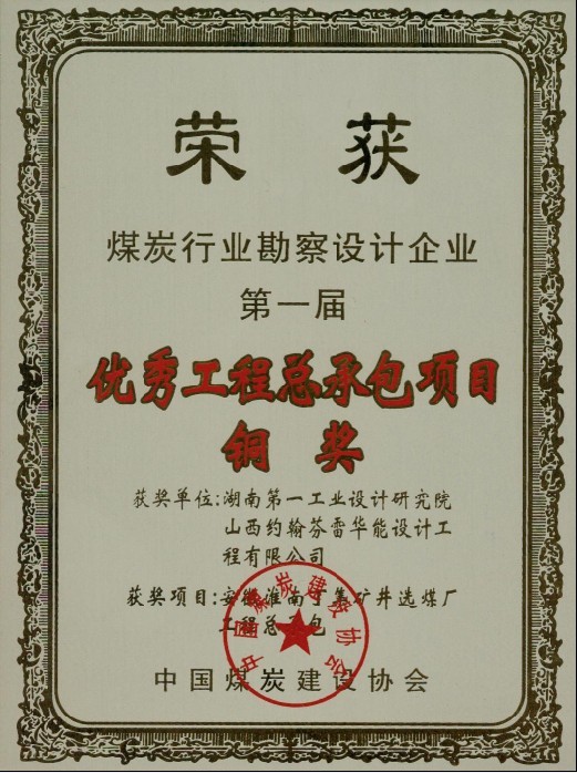 安徽淮南選煤廠總承包銅獎(jiǎng)