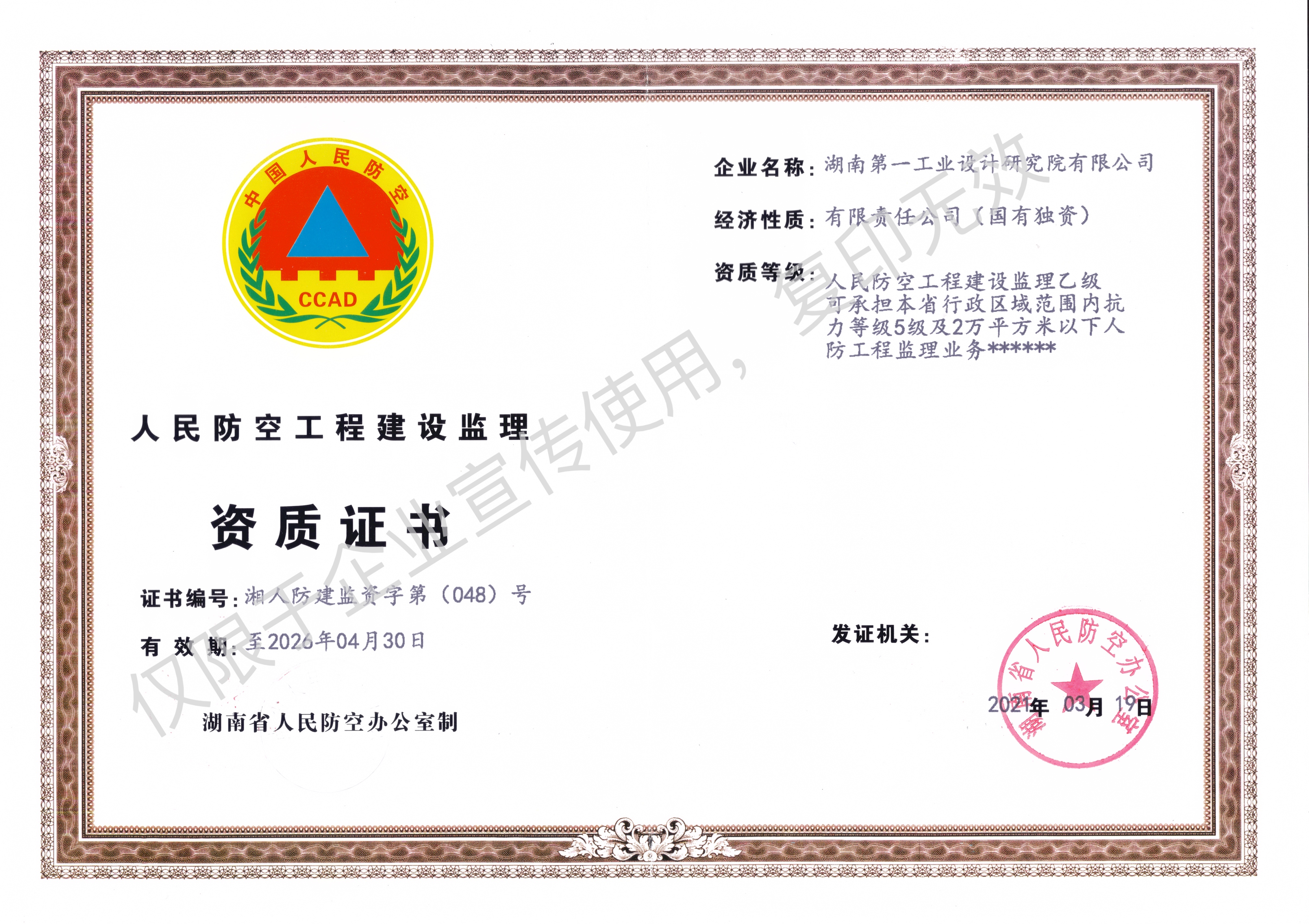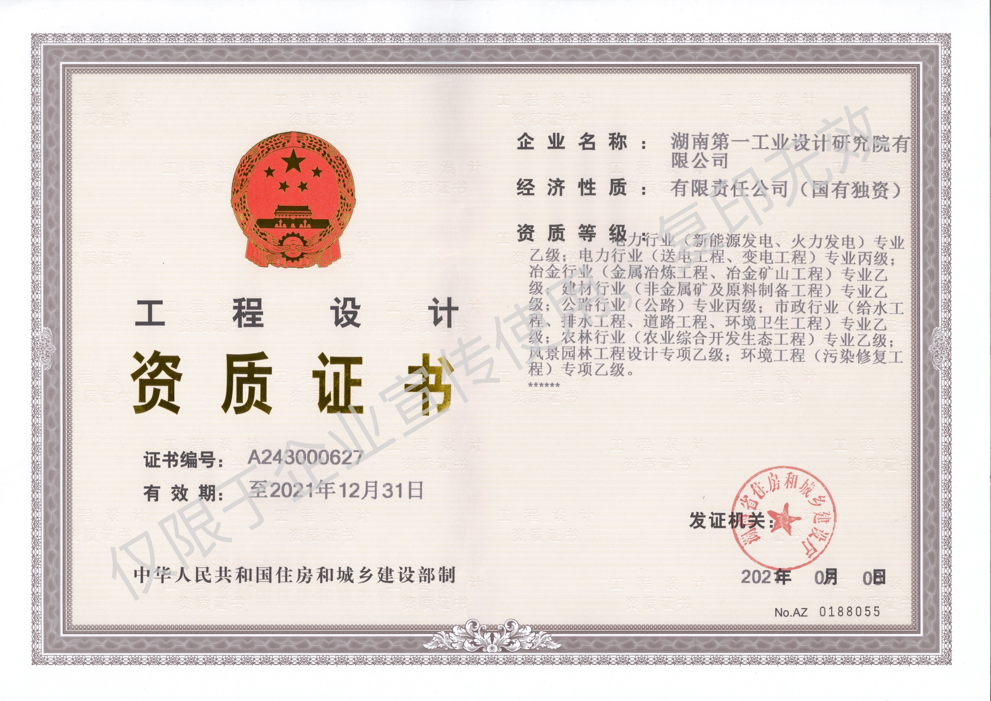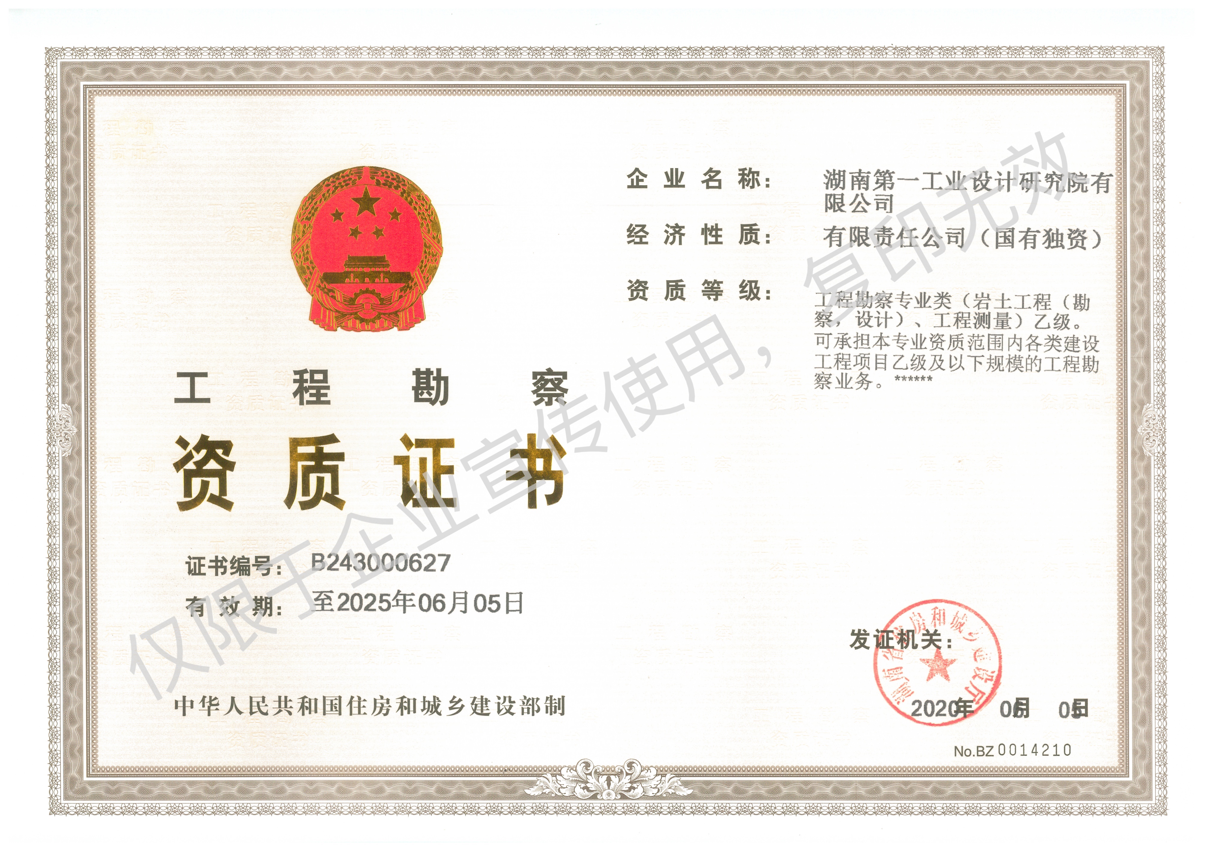 工程設(shè)計(jì)乙級(jí)資質(zhì)證書